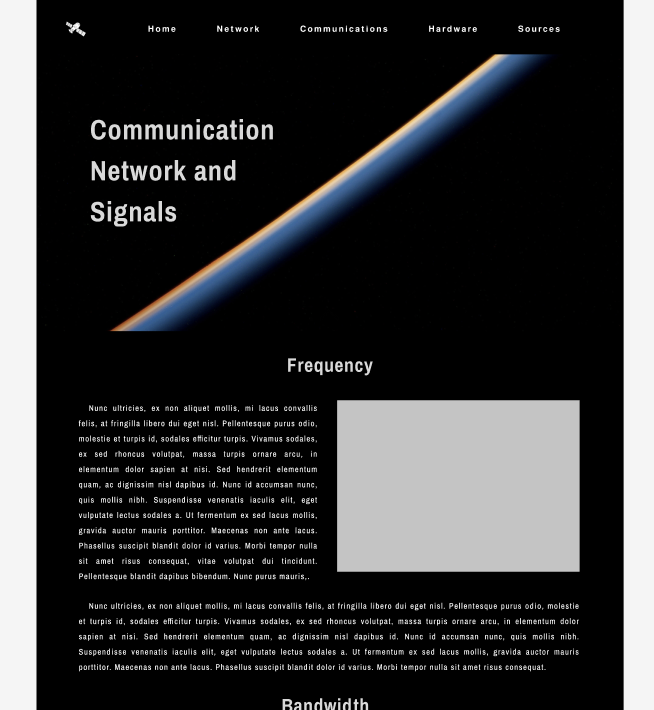 This is my revised mockup of the network page. This is what a typical inner page would look like, containing the page's main picture at the top that takes up most of the screen similar to the home page as I discussed with Brendan. The nav bar color will match the existing colors on the page/of the main image (in this case black). There will be pictures or diagrams if necessary.